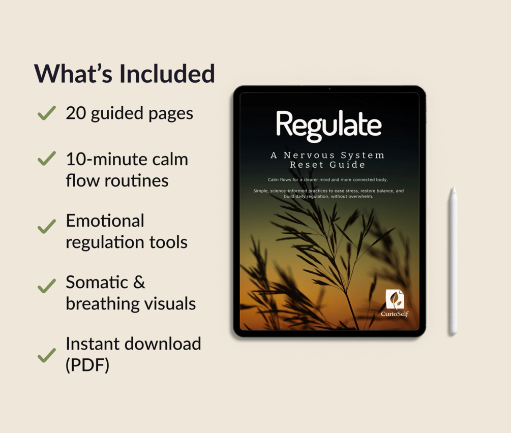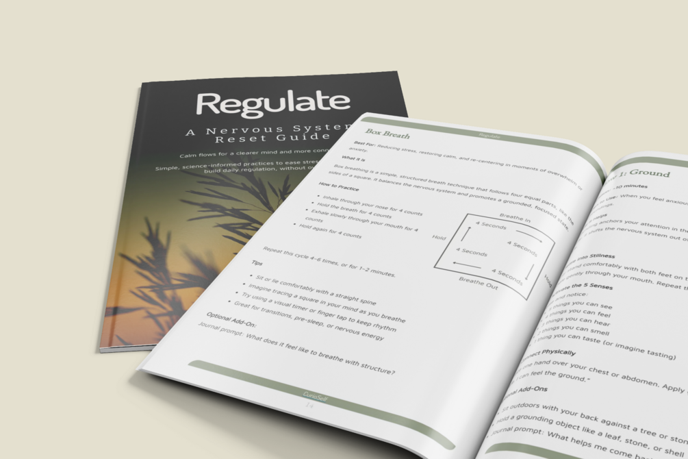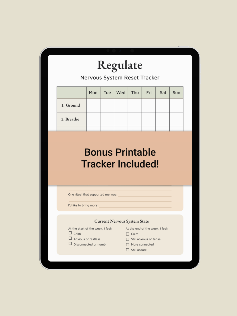 A calming 20-page guide to help you reset your nervous system with gentle, psychology-informed rituals. Includes 5 daily practices, breathwork visuals, reflection prompts, and bonus printable tracker to support weekly regulation.